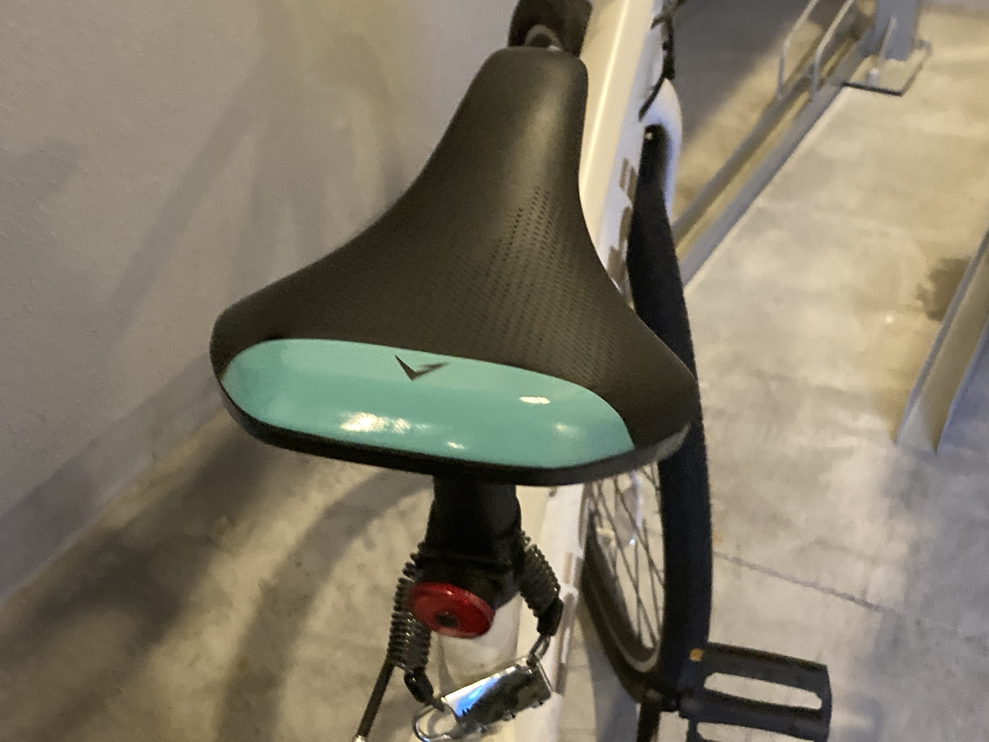 サドルとハンドルにはビアンキのブランドカラーである「チェレステカラー」がアクセントで入っています。
