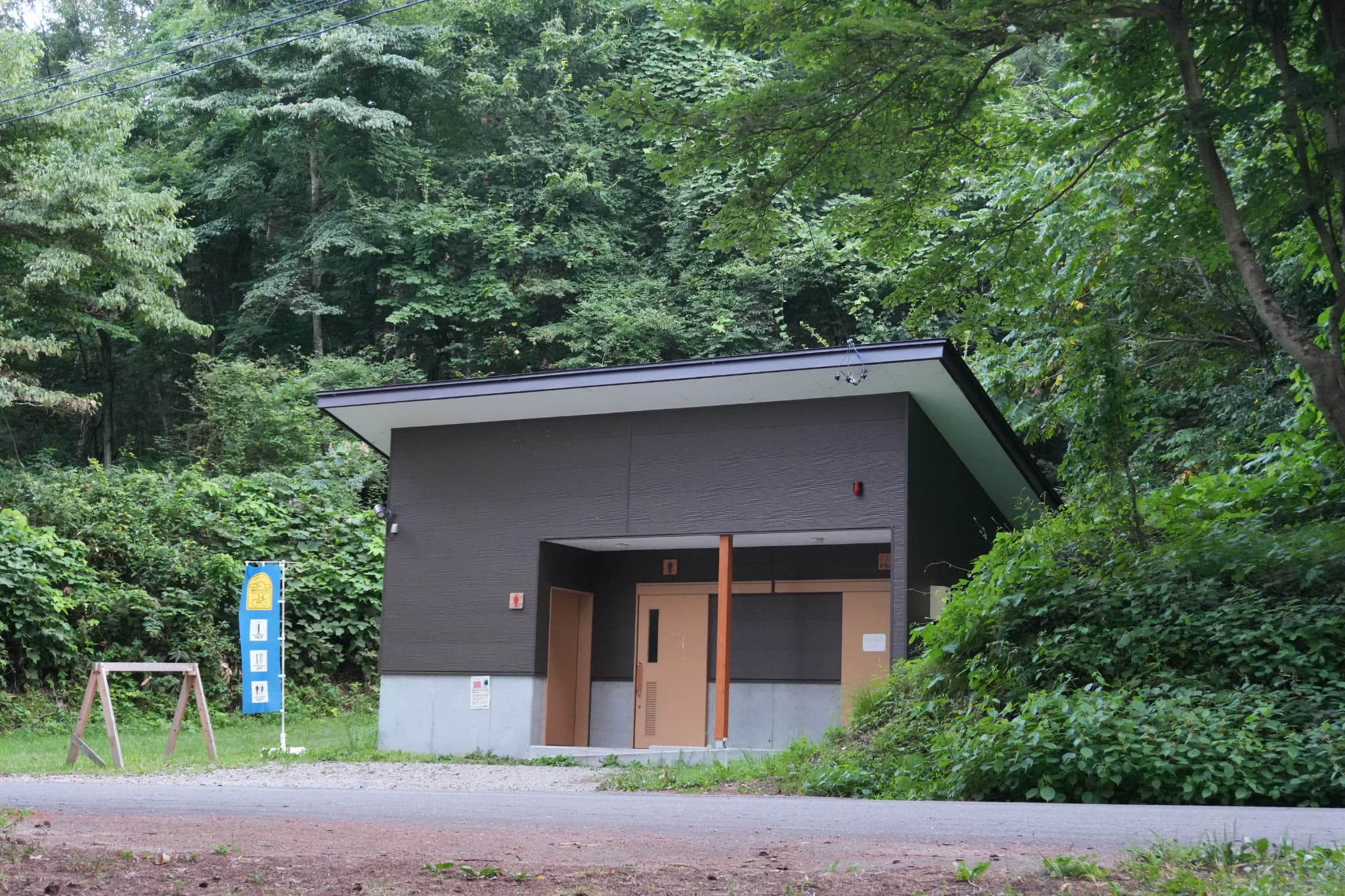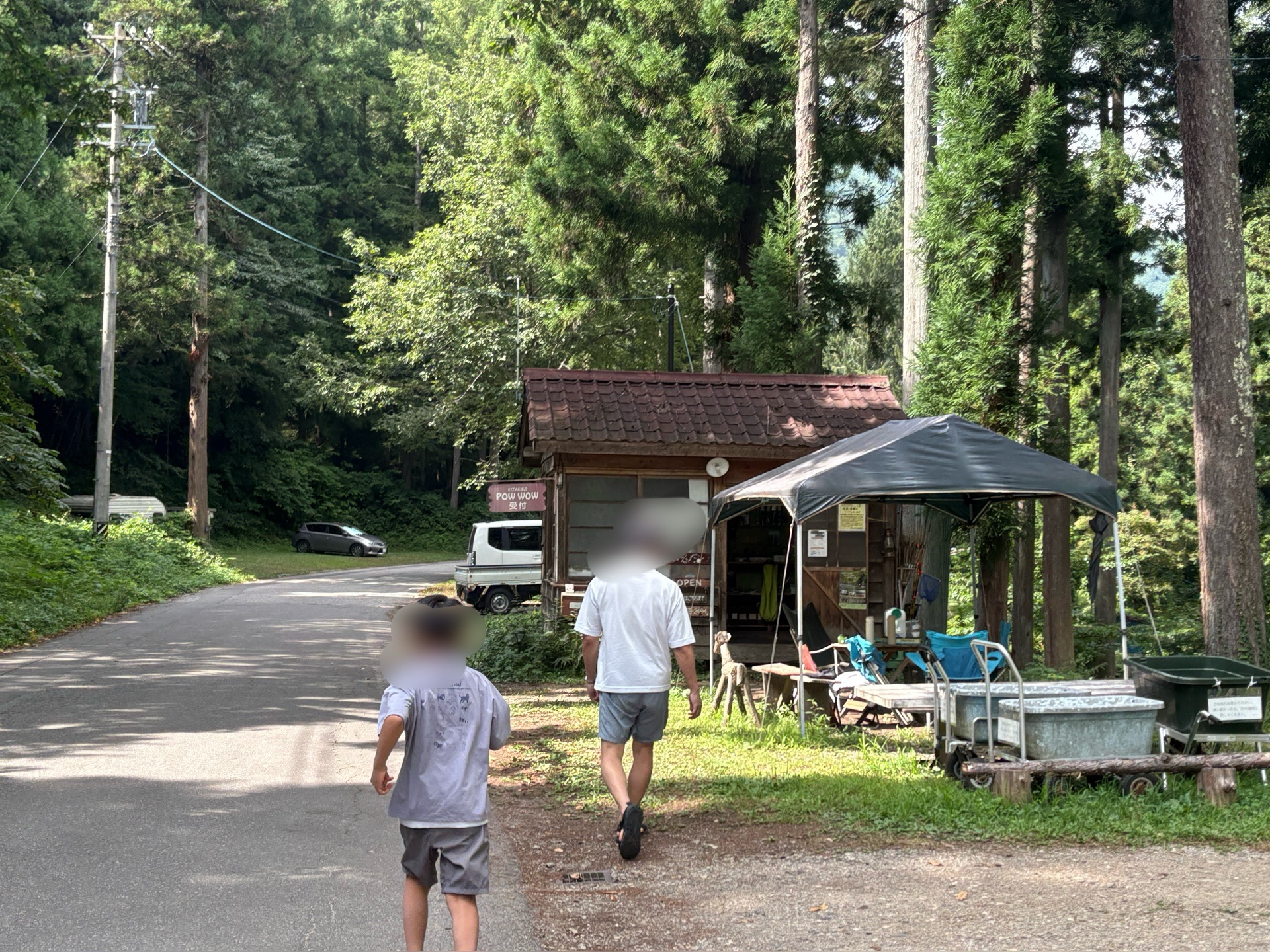 当日キャンプ場に到着したら、まず道沿いにある小屋で受付手続き。