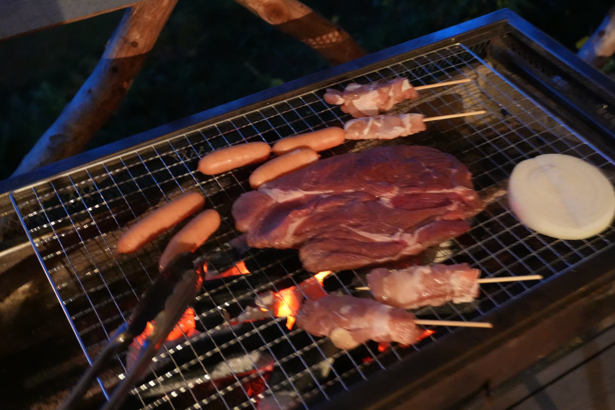 13時半に到着して、そのあと夫と息子でワカサギ釣りに行ったのでBBQスタートは17時半ごろ。