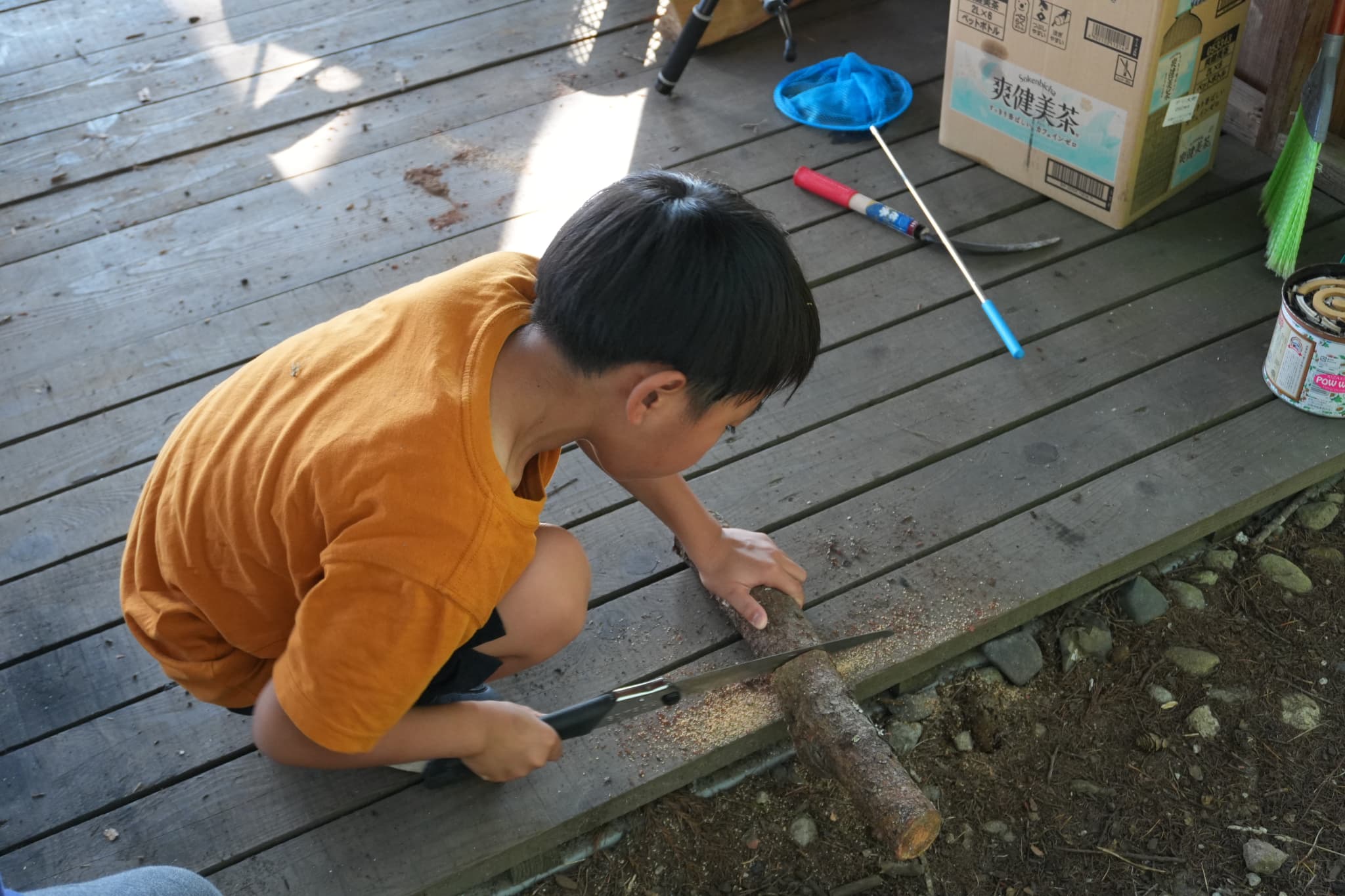 小2の息子、はじめてのノコギリ体験↓