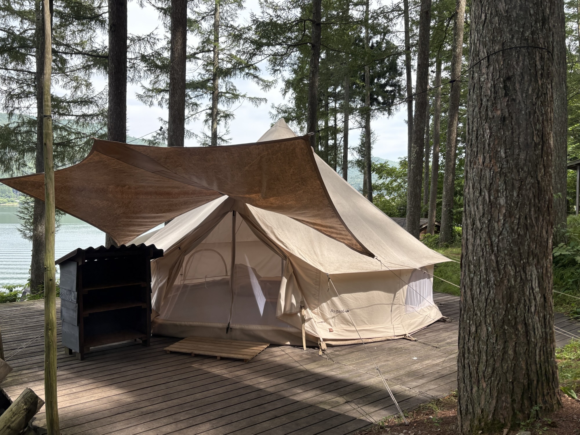 今回私たちが利用したのは常設ベルテントと湖畔テラス。