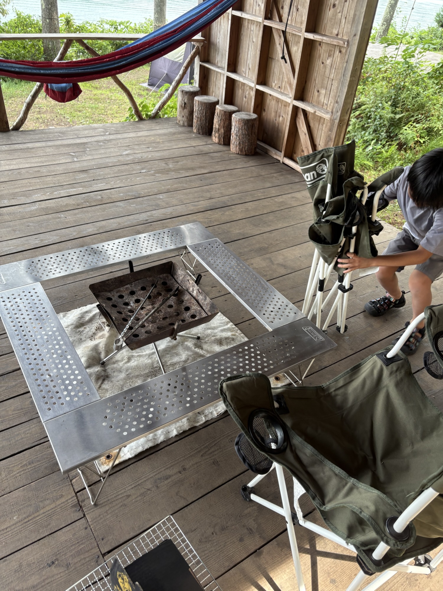 この焚き火台の周りの台もすごい便利でした!